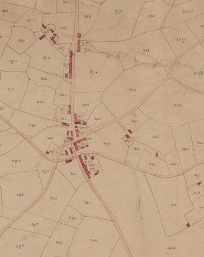 Wedi i Reilffordd Nantlle gyrraedd ym 1828, fe ddechreuodd y pentref dyfu o amgylch croesfan y trac. Gwelir llinell y rheilffordd ar y map degwm ar y dde, yn croesi canol y map o'r chwith i'r dde. Erbyn 1840 roedd o leiaf dwy dafarn a dau ddwsin neu fwy o dai bach sâl eu cyflwr yno, a ddisgrifir fel "poor cottages", a nifer wedi eu codi ar dir Ystad Bryncir. Y rhes hir ar ochr y lôn fawr i gyfeiriad Caernarfon yw tai Treddafydd, a godwyd tua 1835 gan Robert Williams, teiliwr y pentref. Ychydig cyn hynny, ym 1830, roedd capel Wesle wedi ei godi yn Nhreddafydd hefyd, ac roedd cynulleidfa gymysg o Fethodistiaid ac Annibynwyr yn cwrdd mewn tŷ ger y Stag's Head hefyd yn yr 1830au. Wrth y groesfan reilffordd yr oedd seidins a warws y lein, a ffynnon y pentref.[6]